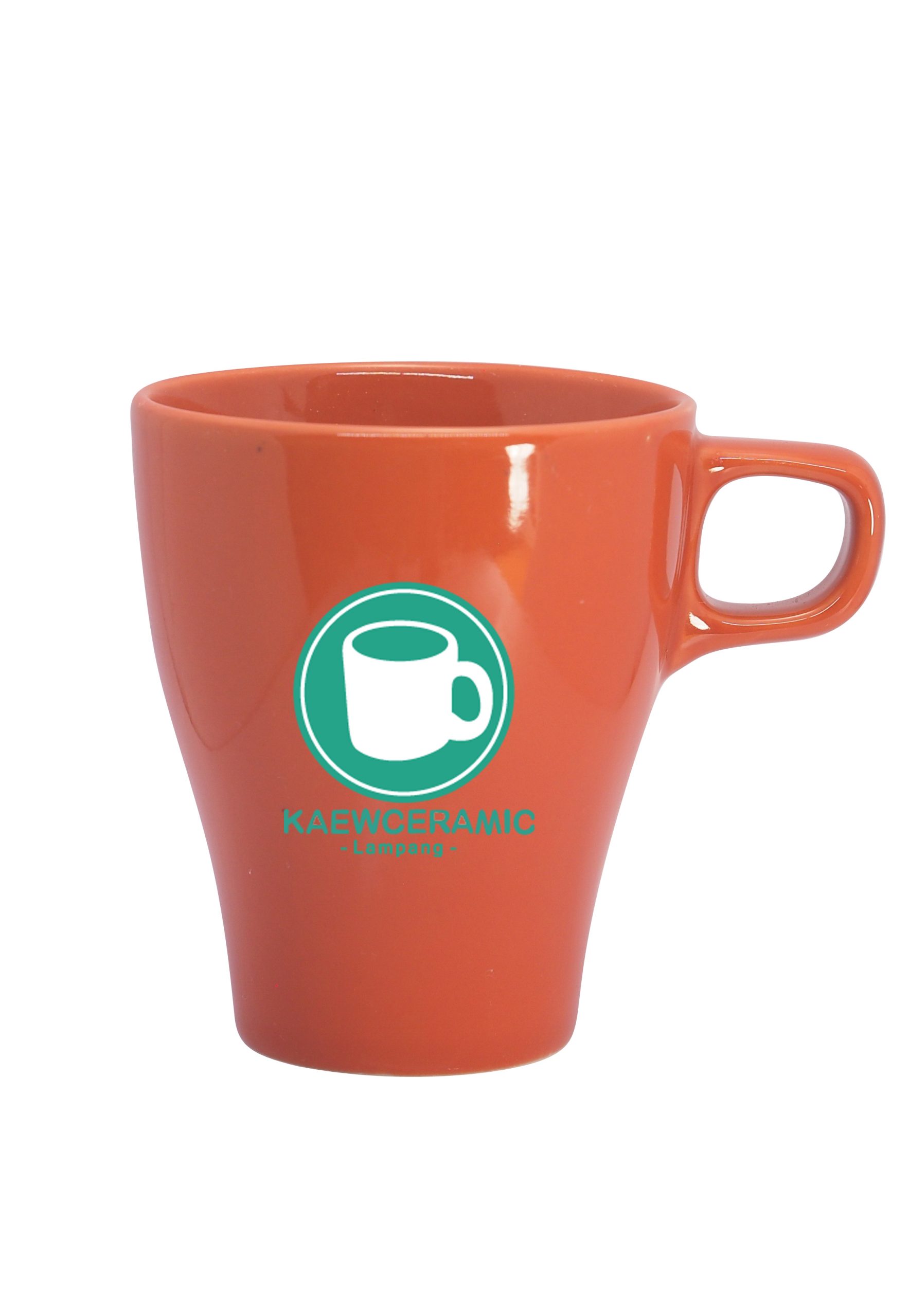 แก้วเซรามิคสีส้มอิฐ หูเล็ก แก้วสกรีนโลโก้ ของที่ระลึก
