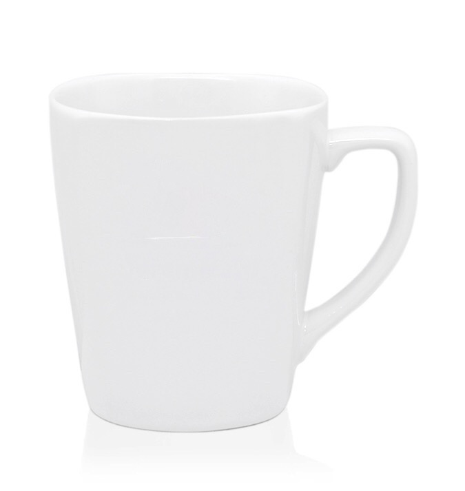 แก้วเซรามิคขาวเชพวีก้นเหลี่ยม แก้วสกรีนโลโก้ ของที่ระลึก เกรด A