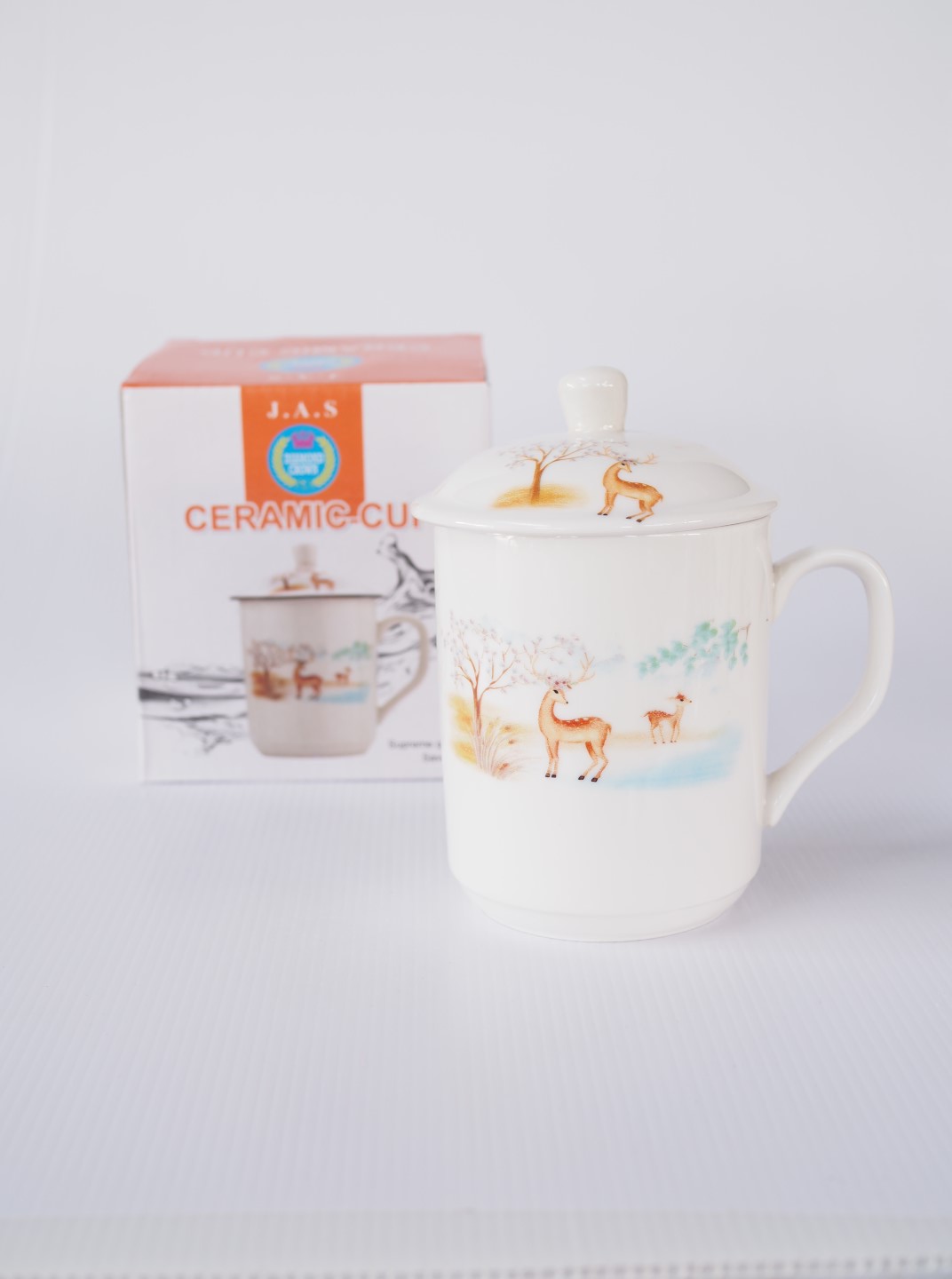 แก้วเซรามิค รหัส KA1317 แก้วเซรามิคกระบอกขาว มีฝาปิดเนื้อนิวโบน